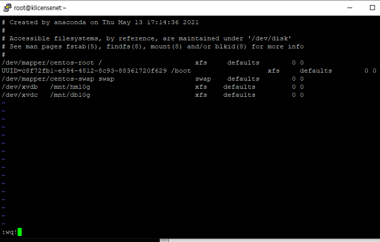 제부팅하면 자동으로 마운트 되게 하려면 fstab에 추가해야한다.