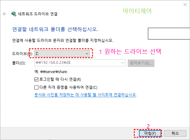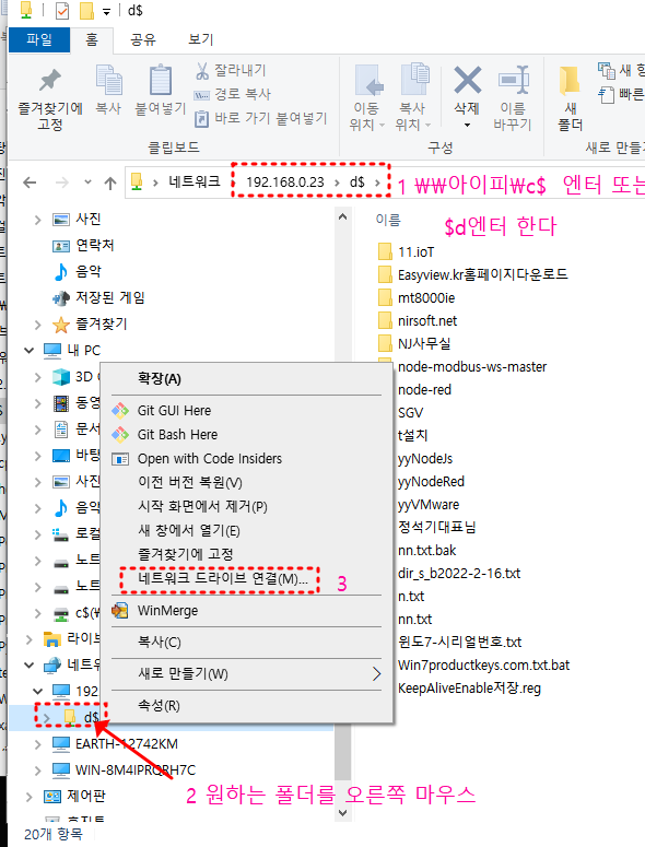 1) 탐색기에서 \\192.168.0.2\c$ 이와같이 원하는 컴퓨터의 IP와 드라이브를 주소창에 친다.