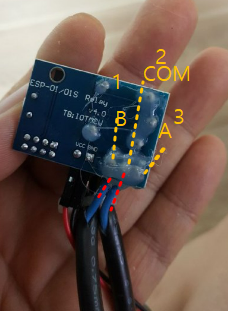 ESP8266 칩에 가까운 쪽부터 1,2,3이라고 하면 2번이 컴(공통)이고 , 1번이 상시 컴과 연결되어있다가. 5v전원이 인가되면 컴과 3번이 연결됩니다.