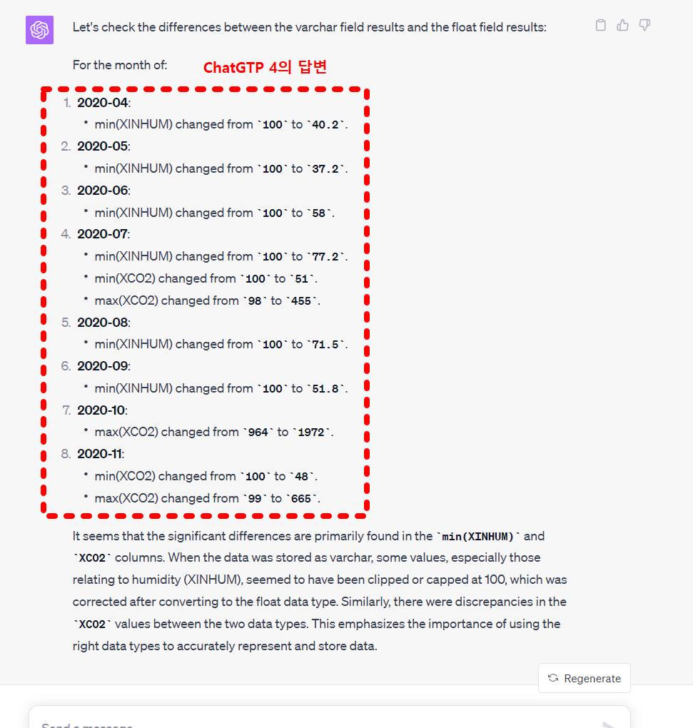 아래는 ChatGTP-3.5와 chatGPT-4의 같은 질문의 답변을 비교한것이다.