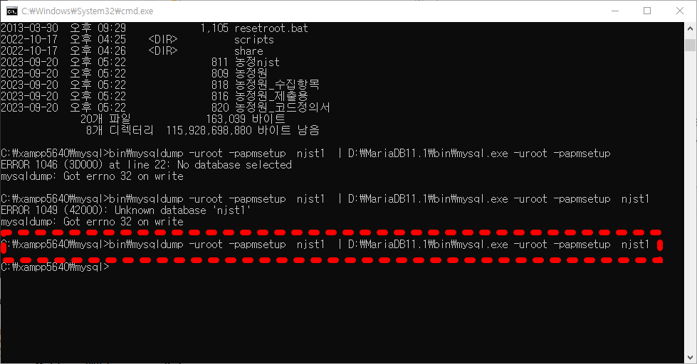 C:\xampp5640\mysql>bin\mysqldump -uroot -papmsetup njst1 | D:\MariaDB11.1\bin\mysql.exe -uroot -papmsetup njst1