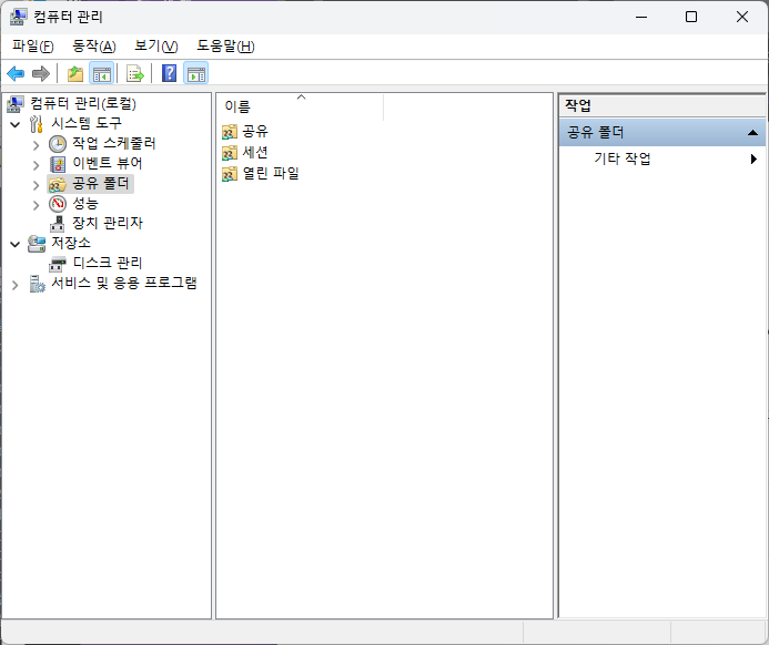 - 앞서 설명한 대로 "컴퓨터 관리"를 엽니다.
