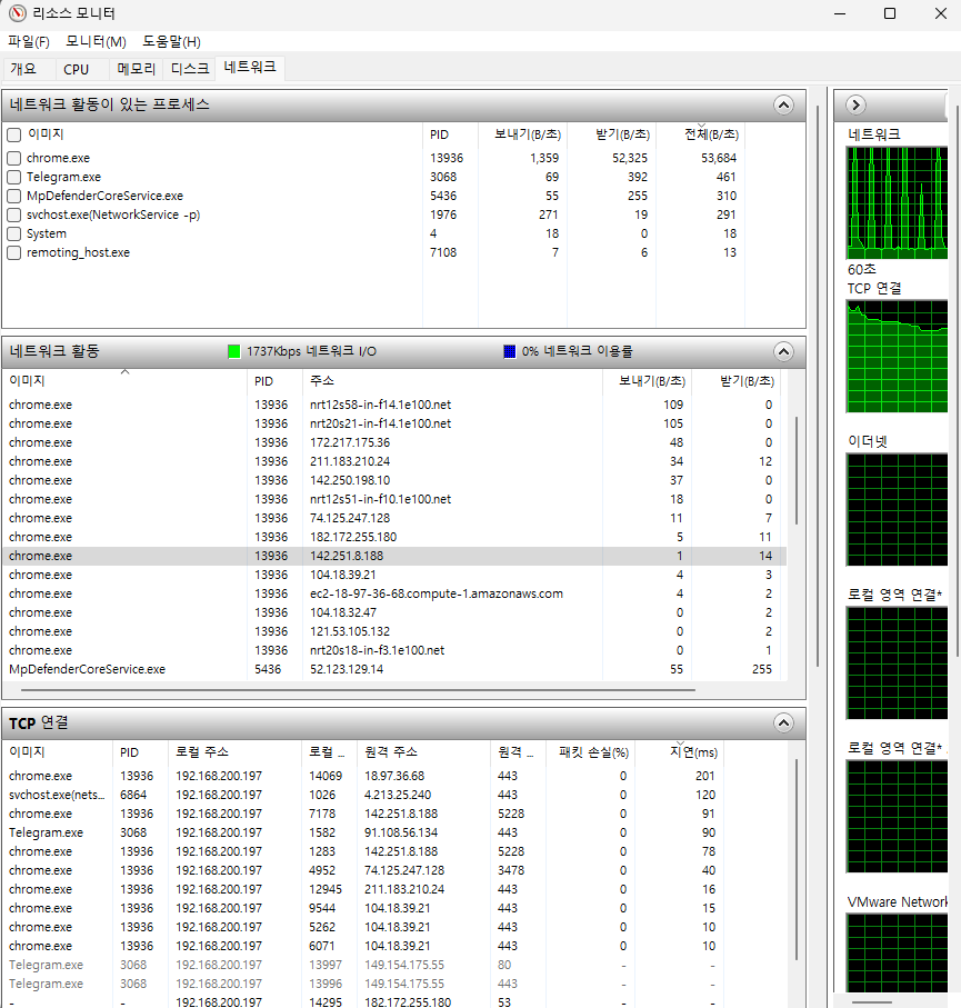 - 네트워크 병목 현상 파악.