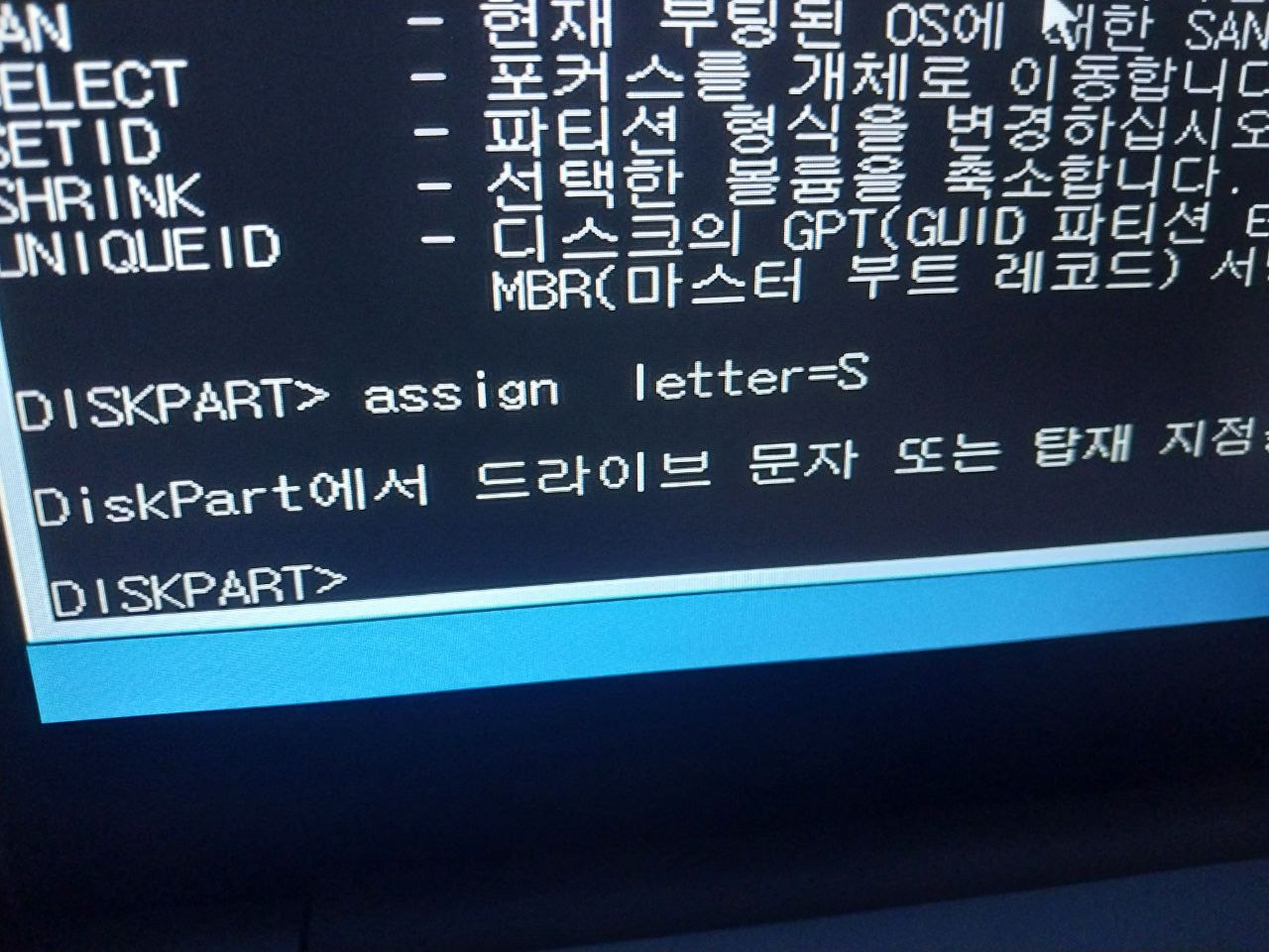 어사인 assign 을 하는것입니다 만약 2번이 복구 시스템 .efi 볼륨이라고 한다면.