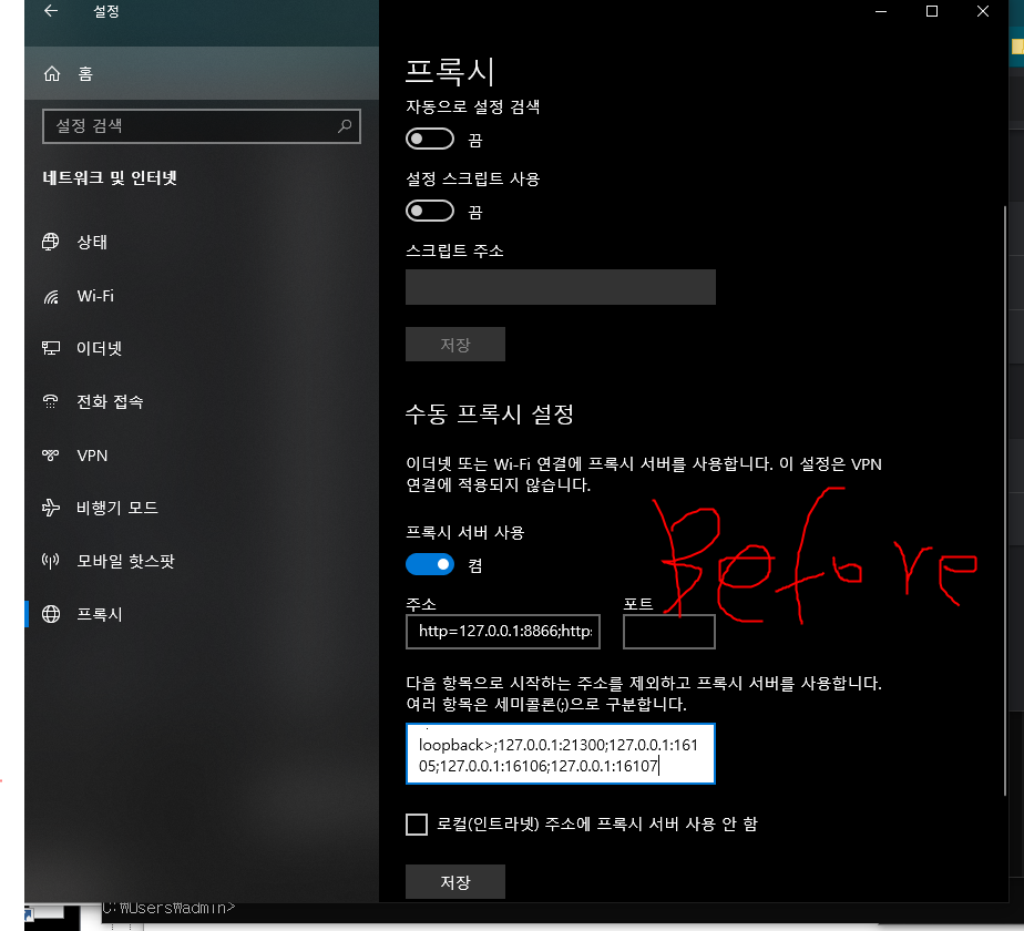 아래 프록시가 설정이 나도모르게 되어있어서 해제 하고나니 해결이 되었다.