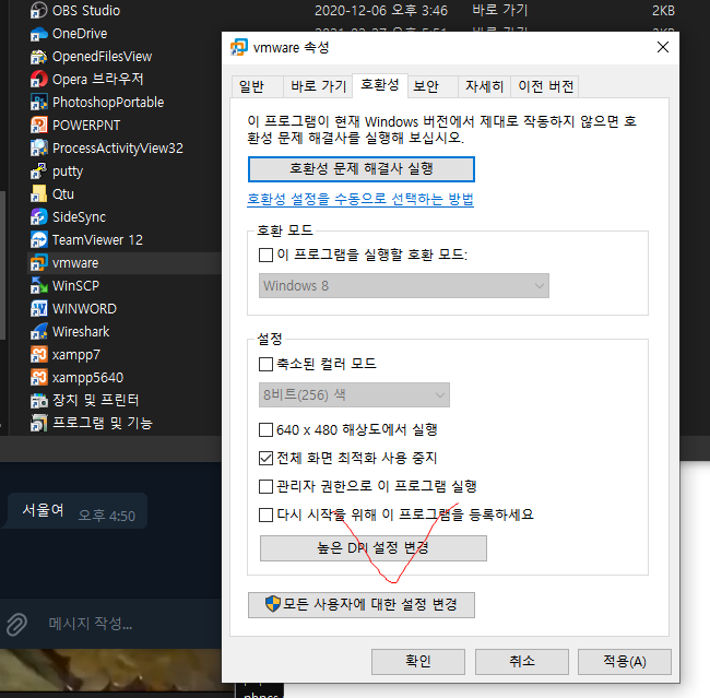 2. VMWare.exe 파일을 오른쪽 마우스 "속성" 열기