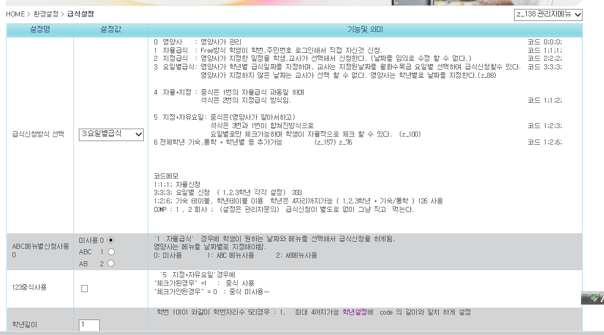그중에 급식관련 설정만 따로 쉽게 뽑아놓은화면이다..
