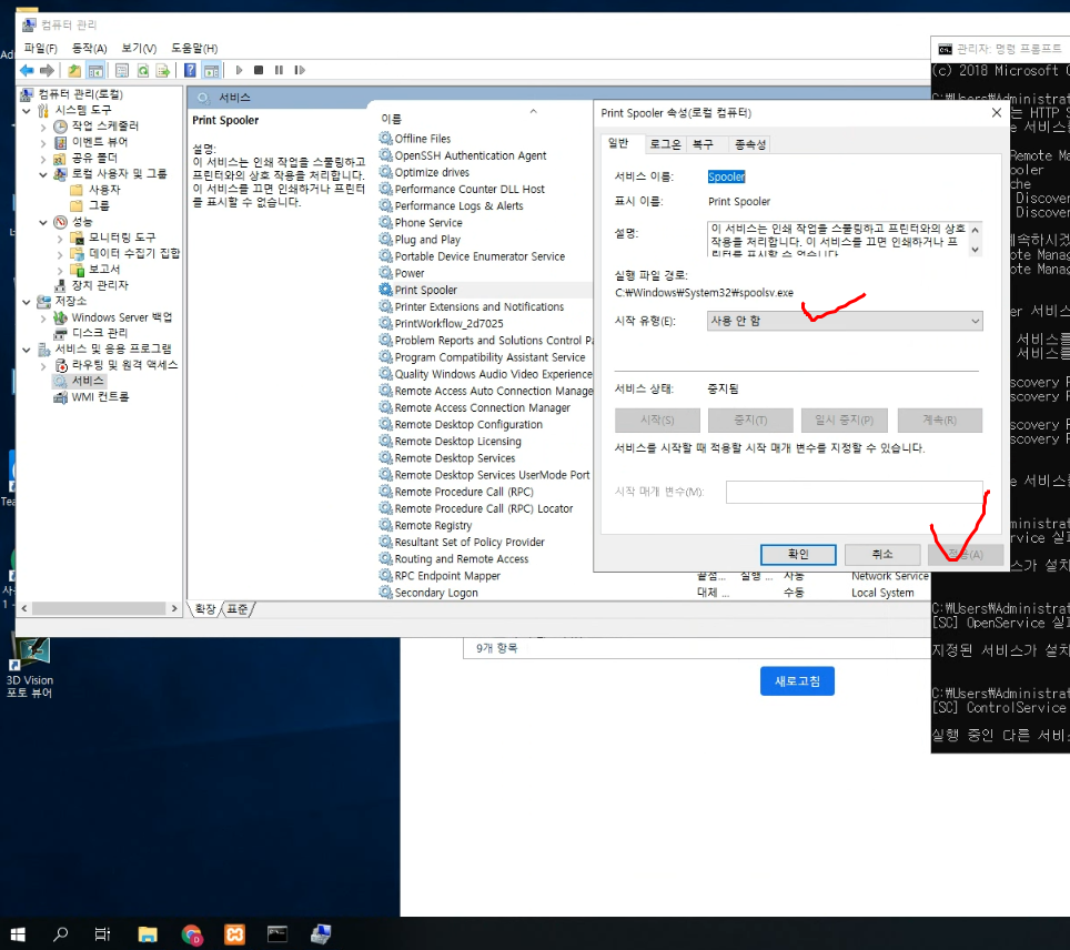 컴퓨터를 재시작 하니 net stop http 명령을 또해줘야하는 번거로움이 있다.