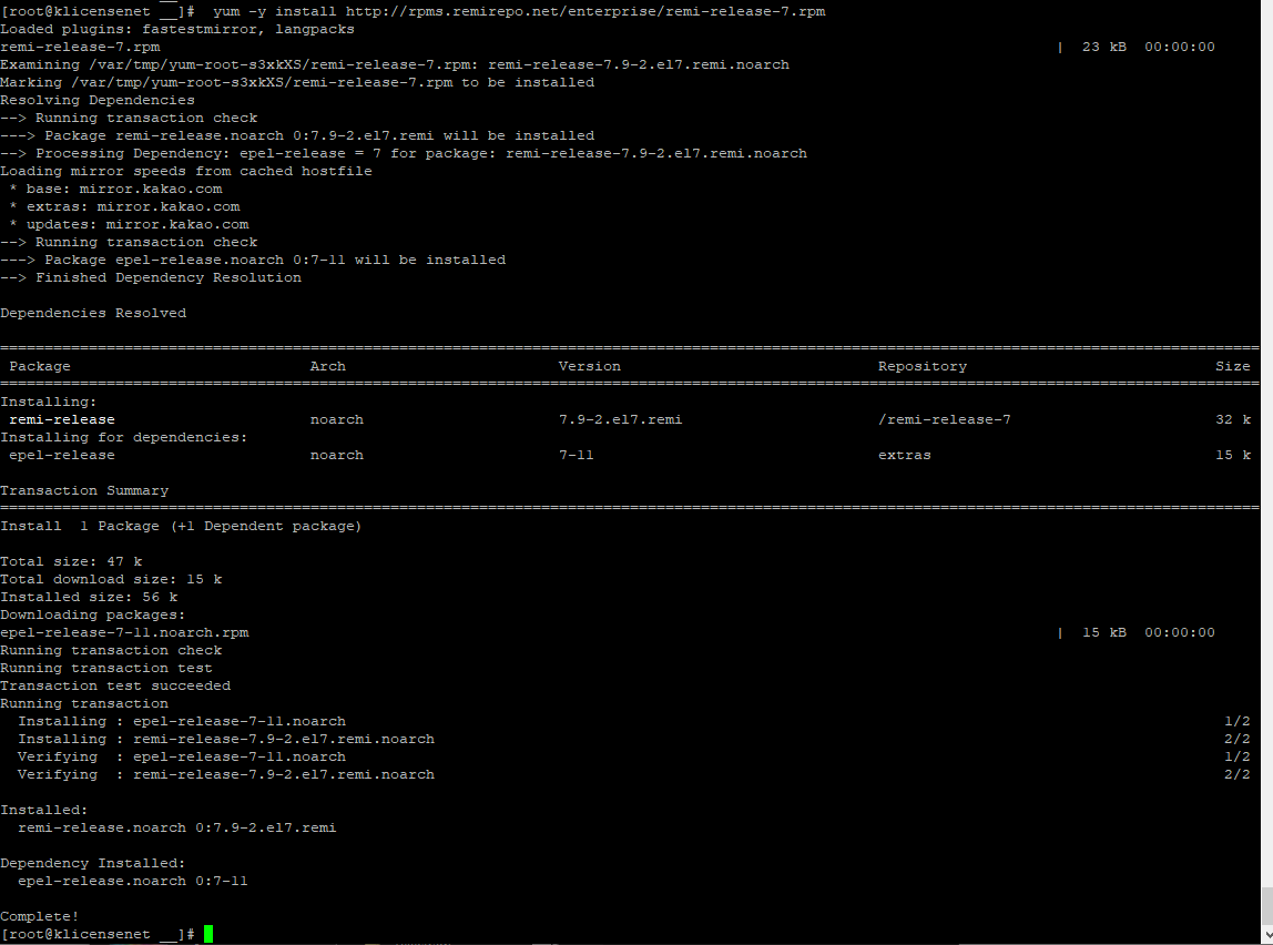 # yum -y install http://rpms.remirepo.net/enterprise/remi-release-7.rpm
