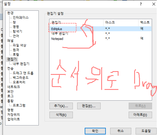 =========== 파일 오른쪽마우스 "편집"클릭 으로 직접 텍스트 파일 수정된다.