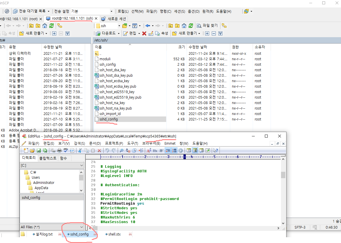 Root로그인 바로하면 더욱 편리하다.( /etc/ssh/sshd_config 를 RootLoginPermit yes 해주면 가능