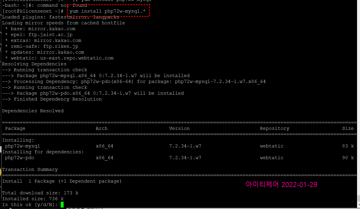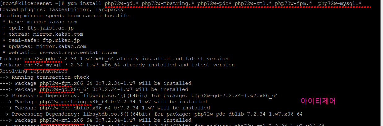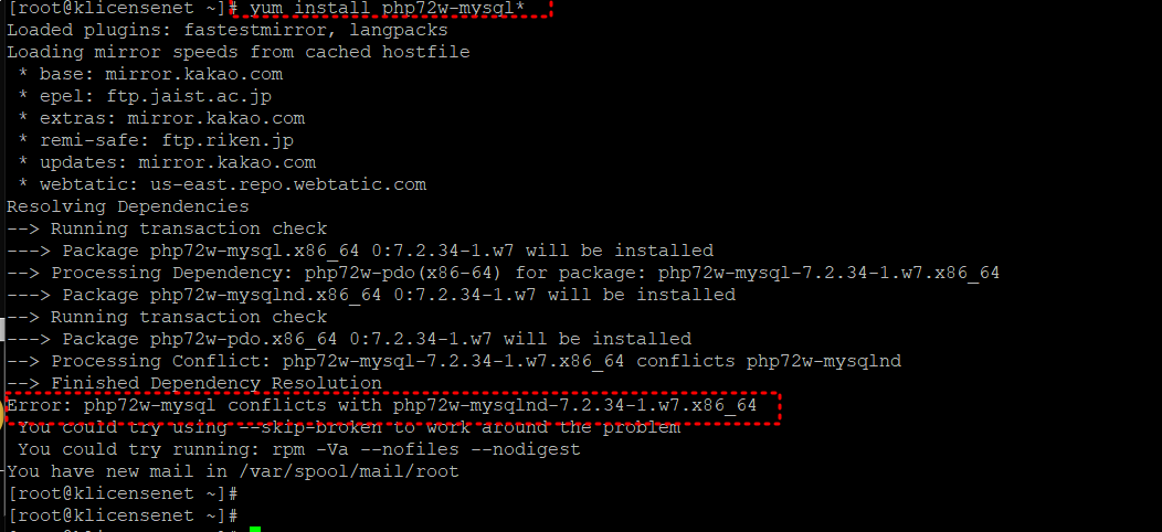 # yum install php72w-mysql* 를 하면 2개 깔릴것인데..오류가난다.