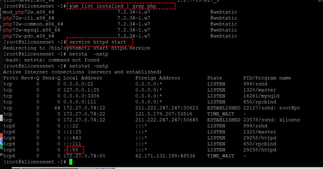 KT-Cloud의 일반Server서비스에 CentOS7.2에 APM php7.2설치 본문