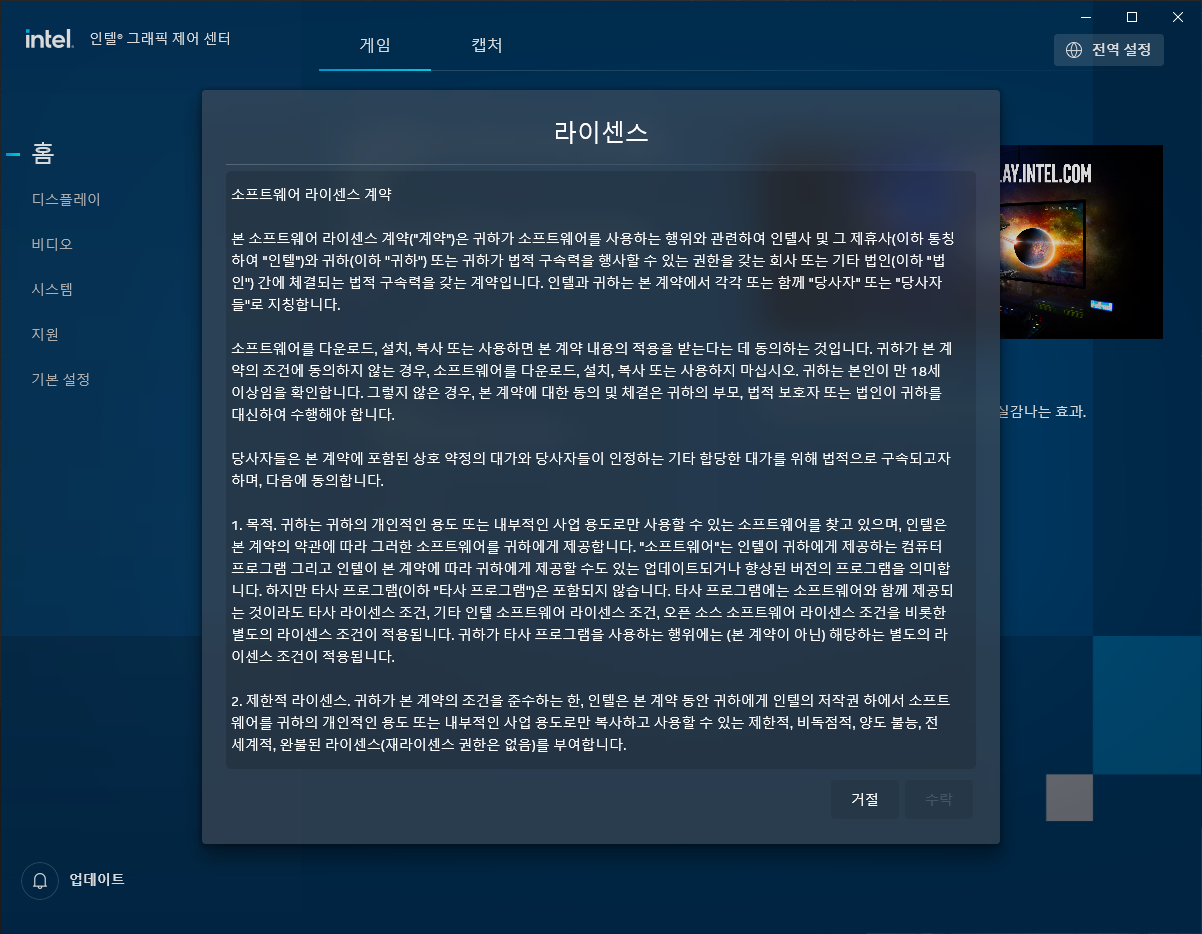 라이센스 동의 이 프롣그램으로 "디스플레이"를 설정하는것이 핵심~~
