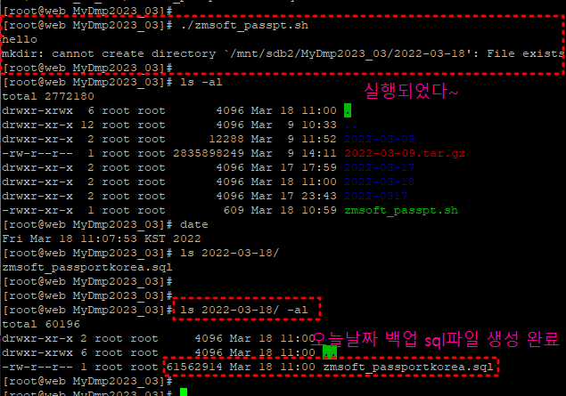 MySQL DUMP하는것이 정상적으로 실행이되었다.
