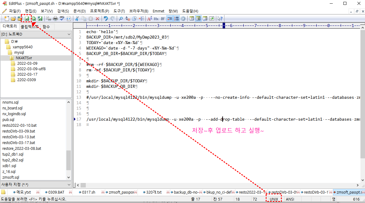 Shell 스크립트 가 windows에서 업로드 한것이 오류가 날때가 있다.