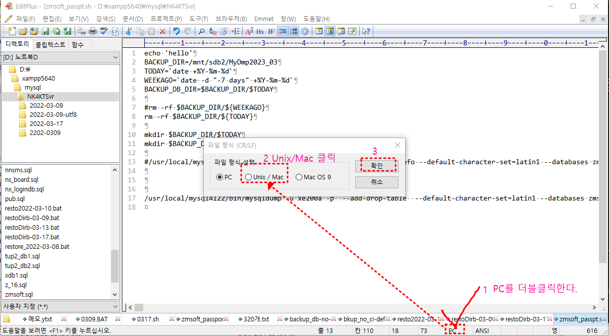 이번에는 Editplus에 PC, Unix 변경 방법이 있어 해결을 하였다.