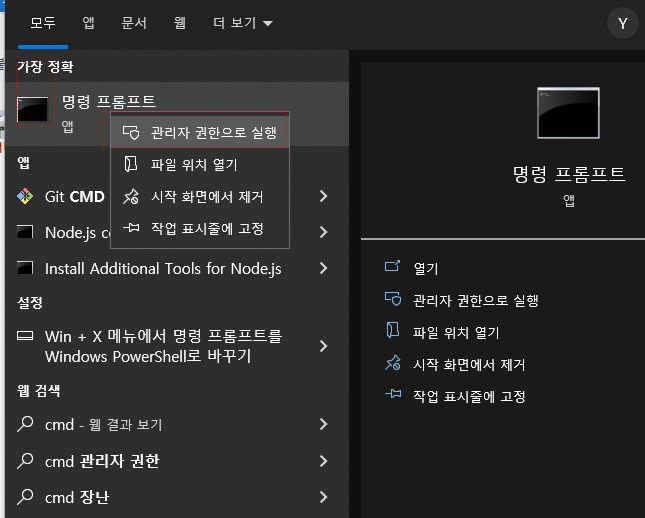--- 명령모드 실행 (cmd 관리자모드 )
