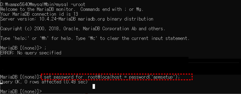 이와같이 하면 apmsetup으로 암호가 바뀐다.