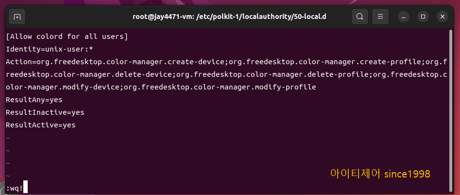 vi /etc/polkit-1/localauthority/50-local.d/color.pkla