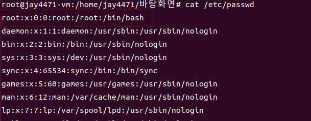 /etc/passwd에는 상단에 root가 있다.