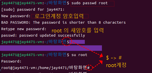 root로그인하면 프롬프트가 $에서 #으로 바뀐다. 끝.