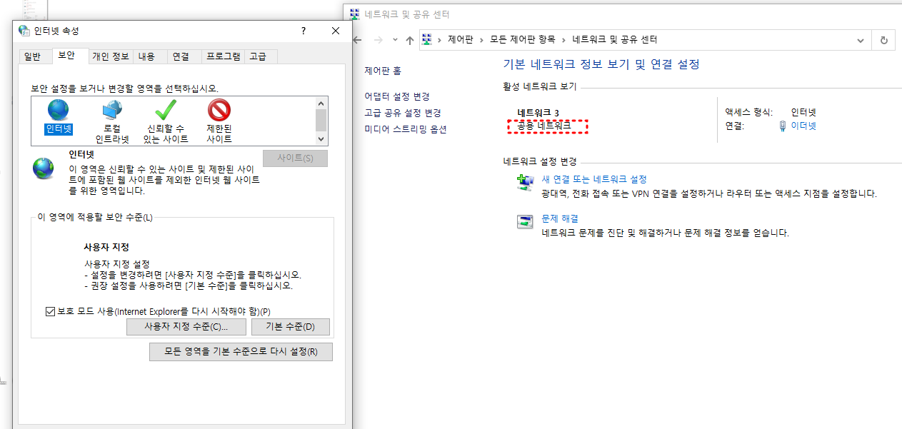 그래서 개인 네트웍으로 변경하는데. 쉽게 제어판에서 가능했었는데..