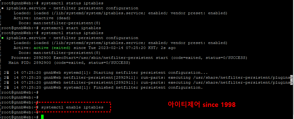 systemctl start iptables 하게되면 서비스가 시작된다.