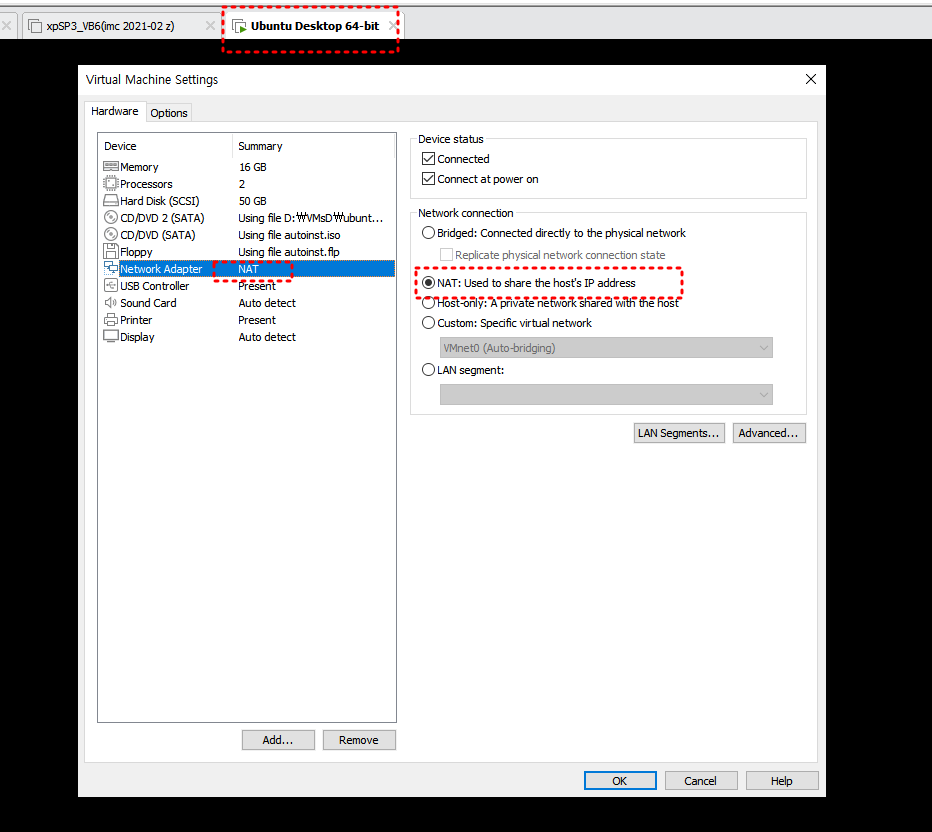 VM 에서 Ubunto20.4 LTS 네트워크설정 본문